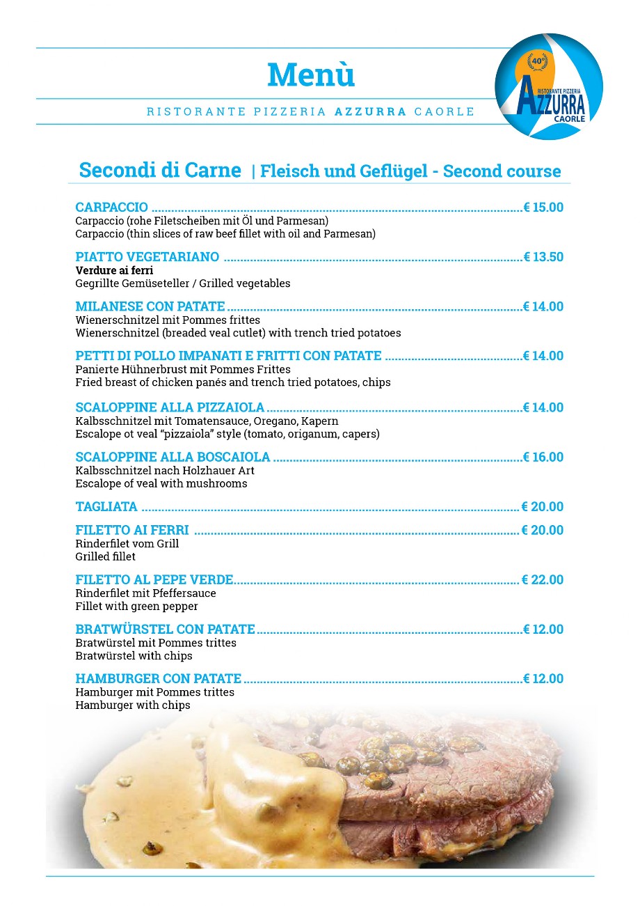 Secondi - Terra - Pizzeria Ristorante Azzurra Caorle